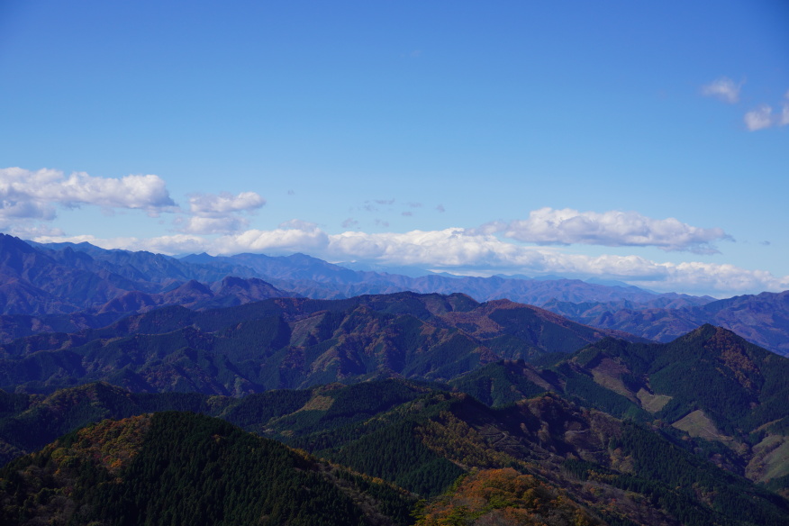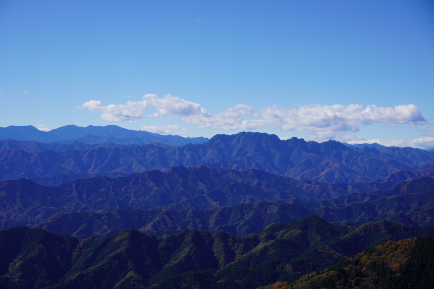 奥武蔵にある城峰山に登ってきました。標高1038mの山頂からの大展望は素晴らしく、幾重にも重なった山脈の先に両神山、さらに遠く奥秩父の山塊を望むことができました。