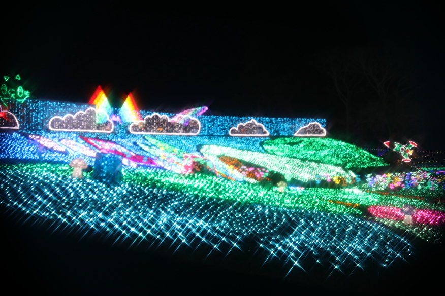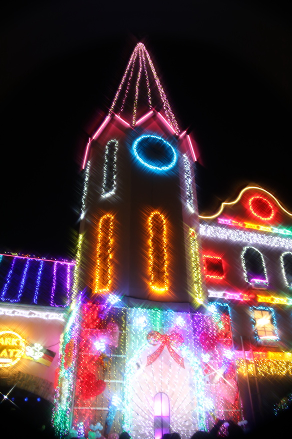 東京ドイツ村は千葉駅から高速バスで1時間弱、千葉県袖ケ浦の丘陵地帯にあります。丘全体を覆うスケールの大きいイルミネーションが見事です。北国行き並の防寒対策をしていったのですが、それでも寒くて滞在時間は2時間あまり、帰りのバスに乗ってようやく身体が温まりました。