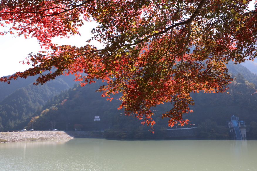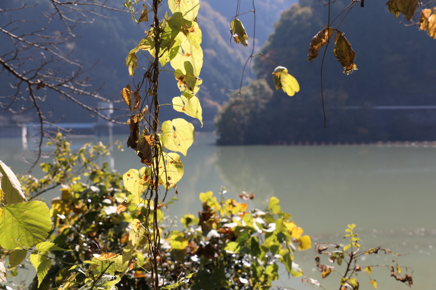 名栗湖2017(1/4) by denkineko · 公開済み 2017年11月10日 · 更新済み 2017年11月10日 名栗湖2017(1/4) 名栗湖(有間ダム)は昨年行った鳥居観音の手前にあります。有間ダムは1986年(昭和61年)竣工のロックフィルダムで、自然越流式の洪水吐があり、ゲートを設けない珍しい構造です。名栗湖までは飯能駅からバスで45分、川又名栗湖入り口で下りました。20分ほど歩いたでしょうか、長い坂を登り切った先にダム湖が見えてきました。水は思いのほか濁っていましたが、他のダムのように出水口が無いため、自然の湖のような趣でした。持参した昼食を済ませてから、周囲4.5kmの湖岸を時計と反対回りに歩きはじめると、いたるところで紅葉が盛りを迎ていて、とりわけ逆光に透ける裏紅葉がきれいで何枚も写真を撮りました。途中に季節外れの桜まで咲いていて、少し驚きましたが、更に歩くとカヌーの工房や釣り場があり、ゆったりとした時間が流れていました。橋を渡って対岸に回ると大きな望遠レンズを山の頂に向けている人たちがいました。何を撮っているのか聞いたところ、「鷹」を狙っているとのことでしたが、肉眼では確認することが出来ませんでした。カメラのモニターには確かに鷹が写っていましたので、きっと飛んでいたんでしょう。湖を一周してから帰路につきましたが、帰りのバスは「山のすすめ」のラッピングバスで、バスの内部もアニメキャラ満載で思わず写真を撮りました。 « ‹ の 2 › » (Visited 53 times, 1 visits today)FacebookXBlueskyHatenaCopy