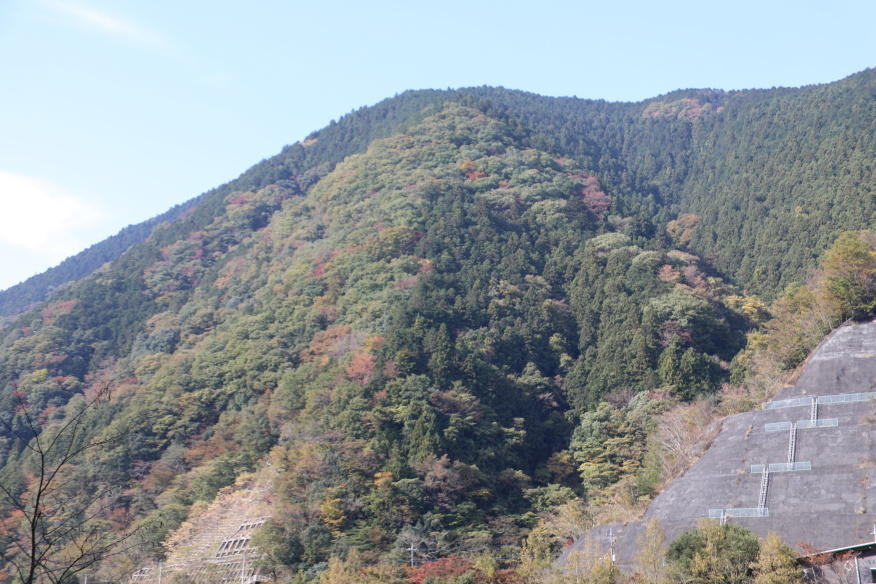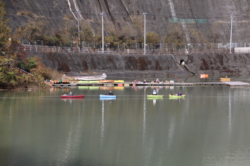 名栗湖2017(3/4) by denkineko · 公開済み 2017年11月10日 · 更新済み 2017年11月10日 名栗湖2017(3/4) 名栗湖(有間ダム)は昨年行った鳥居観音の手前にあります。有間ダムは1986年(昭和61年)竣工のロックフィルダムで、自然越流式の洪水吐があり、ゲートを設けない珍しい構造です。名栗湖までは飯能駅からバスで45分、川又名栗湖入り口で下りました。20分ほど歩いたでしょうか、長い坂を登り切った先にダム湖が見えてきました。水は思いのほか濁っていましたが、他のダムのように出水口が無いため、自然の湖のような趣でした。持参した昼食を済ませてから、周囲4.5kmの湖岸を時計と反対回りに歩きはじめると、いたるところで紅葉が盛りを迎ていて、とりわけ逆光に透ける裏紅葉がきれいで何枚も写真を撮りました。途中に季節外れの桜まで咲いていて、少し驚きましたが、更に歩くとカヌーの工房や釣り場があり、ゆったりとした時間が流れていました。橋を渡って対岸に回ると大きな望遠レンズを山の頂に向けている人たちがいました。何を撮っているのか聞いたところ、「鷹」を狙っているとのことでしたが、肉眼では確認することが出来ませんでした。カメラのモニターには確かに鷹が写っていましたので、きっと飛んでいたんでしょう。湖を一周してから帰路につきましたが、帰りのバスは「山のすすめ」のラッピングバスで、バスの内部もアニメキャラ満載で思わず写真を撮りました。 « ‹ の 2 › » (Visited 33 times, 1 visits today)FacebookXBlueskyHatenaCopy