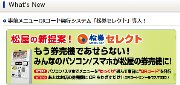 管理人の日記 2017年6月25日 by denkineko · Published 2017年6月25日 松屋がスマホやPCで事前にメニューが決められる「松券セレクト」を導入 松屋の券売機はメニューが階層式になっているため、なかなか目的のメニュ...