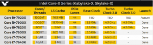 LGA2066規格のコードネーム「Skylake-X」と「Kaby Lake-X」の上位版が該当するとの憶測もありますが、AMDが2017年3月に発売した8コア/16スレッドの「Ryzen 7」シリーズの驚異的なコストパフォーマンスに対抗するためとも言われています。