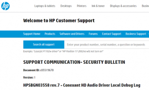 米HPは、「Conexant HD Audio Driver」上にキーロガー動作が確認されていた件について、問題を修正したドライバパッケージの配布を開始しました。