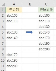 例えば、if関数で条件が一致するセルを別のセルに抽出すると空白行ができますが、空白行を取り除き、上詰めにする方法です。