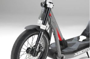 『X2City』は、後輪に装備されたブラシレスモーターで、最高速度は25km/h。ハンドルバーにある操作ユニットで8〜25km/hの間から5段階で走行速度を調節できる仕組みになっています。408Whバッテリーを搭載し、走行可能距離はおよそ25〜35km。バッテリーの充電には家庭用のコンセントが利用でき、2.5時間ほどで充電が完了するそうです。