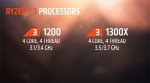 「Ryzen 3 1300X」はベース3.5GHz/ブースト3.7GHz、一方の「Ryzen 3 1200」はベース3.1GHz/ブースト3.4GHzで動作します。既存のAM4ソケットと互換性があり、A320/B350/X370チップセットのマザーボードで利用できます。