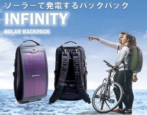 背面に軽く薄く柔らかな日本製ソーラーパネルを配置したバックパック「INFINITY Solar BackPack」がアスキーストアで販売中です。価格は52,380円(税込)と高めですが、晴天時約5~6時間でスマホをフル充電する電力を得ることができます。アウトドアでも活躍しますが、万が一の災害時にも重宝しそうです。
