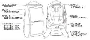 背面にフレキシブル太陽電池パネルを配置したバックパック「INFINITY Solar BackPack」