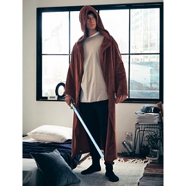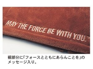 「なりきりローブ毛布」は、なめらかなマイクロファイバー素材で着心地バツグンとのことで、2か所のボタンで留めて軽く裾上げすれば、着たまま歩けます。また、裾部分に「フォースとともにあらんことを」のメッセージが入っていて、ファンの心をくすぐります。素材はポリエステル100%で、サイズは着丈約135、ゆき丈約85cm。