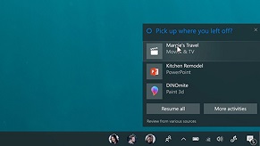 - つのデバイスからログアウトするとき、次に使用するデバイスでアプリ、文書、Web サイトでの作業を続行するかどうか、Cortana が確認します。接続したデバイス間でクリップボードからコピーして貼り付けることもできます。