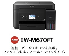 エプソン販売株式会社は、2017年モデルのインクジェットプリンタ12機種16モデルを発表しました。そのうちエコタンク搭載モデルは、ファクス対応したオールインワンタイプの『EW-M670FT』、狭いスペースにも置けるコンパクトサイズの『EW-M571T』、2つのブラックインクで文書も写真も気兼ねなく印刷できるスタイリッシュでコンパクトなA3対応複合機『EW-M970A3T』、耐久性と給紙容量に優れたビジネスにおすすめのA3ノビ対応複合機『EW-M5071FT』の4機種です。