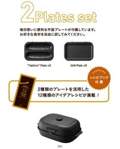 フラットな平面プレートも付属し、アップルパイやホットサンド、肉、魚なども手軽に焼くことができる。春夏秋冬の旬の食材を利用して、さまざまな料理を楽しめるオリジナルレシピも付属します。
