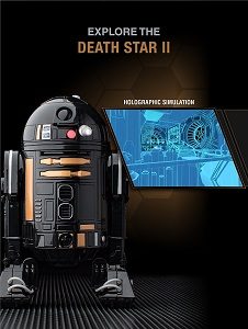 スマホ・タブレットをかざして「スター・ウォーズ」シリーズに登場する宇宙船の内部を疑似探検できるAR(拡張現実)機能があり、皇帝の玉座の間と第2デス・スター内をAR探検できるようになっています。
