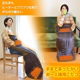 足を完全に覆います。中は裏起毛のボア素材でフワフワ気持ちがよく、足底部分にヒーターが内蔵されています。 温度は35~60度まで5度単位で設定可能。 暖かさが逃げないようにカバーの外側はナイロン素材。 いつまでも、どんなに寒い日でもしっかりと暖めてくれます。