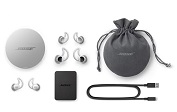 『Bose noise-masking sleepbuds』は、外見はワイヤレスヘッドホンですが、音楽再生機能は無く、いびきや近所の騒音などのノイズをマスキングします。本体にはフラッシュメモリが搭載され、安眠をサポートする複数の環境音があらかじめプリセットされています。この環境音は、アプリで音量および再生時間が設定でき、設定した時間に目覚ましアラームを鳴らすことも可能です。