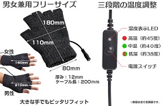 手の甲だけでなく指まで届く形状のヒーターで特に冷たい指先を集中的に温めます。指先が出ているのでキーボードのタイピングやスマホ操作も問題ありません。