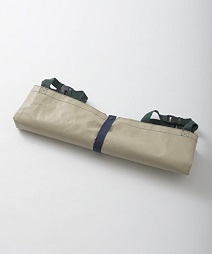 MILESTO UTILITY PE 3WAYシートバッグ』の価格は2,808円(税込)。ベージュ、ネイビー、ブルーグレーの3色があります。バッグとして使用する場合の本体サイズは、横1060×高さ600×奥行450mmと深さがあり、耐荷重も30kg。そのためスケートボードや、折りたたみ自転車のような、重くて大きい物を入れても問題ありません。本体には持ち手が4つ付いているので、二人で持ち運ぶこともできるようになっています。