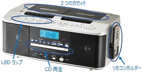 巻き戻しや早送りの操作でもカセットテープの終端になるとボタンが解除される「フルオートストップ機構」、ハイポジションテープを適正な音質で再生する「テープセレクト」、CDの再生中に停止して電源を切った場合でも、電源を入れると停止した箇所から再生できる「レジューム再生」などを新たに搭載しています。