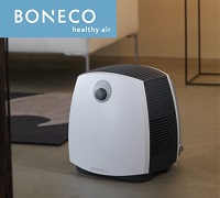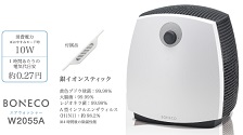 BONECO(ボネコ)の「エアウォッシャー W2055A」は、空気清浄機能も備えた加湿器です。加湿方式は気化式で、ファンで吸い込んだ空気を本体内部の水にくぐらせ、湿った空気にして送り出します。