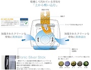 本体内部には、ホコリや微粒子をキャッチする独自開発の「自動回転ドラムディスク」と、加湿槽内の雑菌を防ぐ「銀イオンスティック」を搭載。加湿と空気清浄を同時に行なえ、吸い込んだ空気をクリーンにして排出するため、キレイな空気で加湿できます。