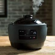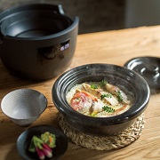 開発に4年、試作500個、米3トンを使った、長谷園とメーカーの共同開発。伝統工芸と家電技術が融合した「かまどさん電気」。ガスでもなく、IHでもなくシーズヒーターを用いて土鍋をそのまま熱し、火にかけた土鍋ご飯と同じ味に炊き上げる、土鍋炊飯器。土鍋そのものの形を活かした造形や、無駄のない直感操作を実現した曲面タッチパネル。ワンタッチで土鍋で炊いたご飯を味わえます。