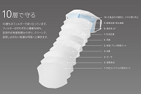 『bo-bi(ボービ)』は、世界一細かいメッシュフィルターによって、PM2.5や花粉、菌、ウイルス飛沫を99%カットするというマスク。10層ものフィルターから成り立つのが特徴で、それぞれのフィルターは、PM2.5+ウイルス飛沫カットや、アレル物質カットなどの機能を備え、空気中の有害物質から守ってくれるようになっています。