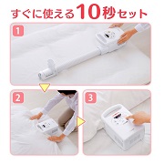 ふとんの間にホースをセットして、立体ノズルを上げれば準備完了です。しまう時もマット(袋)を折りたたむ手間がなく、らくらくしまえます。