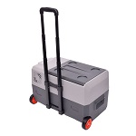 バッテリーのほか、ハンドルとキャスターが付いた、手軽に持ち運べる冷凍冷蔵庫。庫内温度は-20℃~20℃まで設定可能で、未使用状態から庫内温度を一気に下げる急冷モード、電力消費を抑えた節電モードを搭載しています。