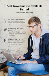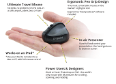 空中に浮かせた状態であってもポインティングデバイスとして使用可能で、プレゼン用のツールや移動時のポインティングデバイスとして最適です。PCやMacだけでなく、iPad用のマウスとしても利用できるようになっています。