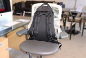 「Posture Keeper」と名付けられたこのグッズは、バックパックのベルト部分だけを独立させたかのような製品。これをオフィスチェアの背もたれに取り付け、チェアを背負うような格好で座れば、猫背になることも、また、腰だけがデスクの下に潜り込むような姿勢もとれなくなる仕組みです。
