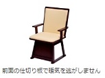 付属の椅子のサイズは、545×545×800mm(WxDxH)で、座面高は400mm。足元前面にこたつの暖気を逃がさないよう、仕切り板が付いています。熱源は薄型温風ハロゲンヒーターで、消費電力は600Wです。