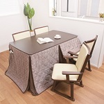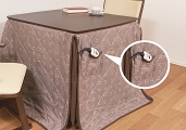 こたつ布団に、消臭技術「トリプルフレッシュ」を採用したテーブルこたつセット。トリプルフレッシュは、住江織物株式会社の独自消臭技術で、ホルムアルデヒド・タバコの臭い・生活臭・ペット臭を、空気中の酸素を使って化学的に水や二酸化炭素などの無害な成分に消臭(吸着・分解)します。こたつ布団はブロックチェック柄で、操作リモコンを収納できるポケットが付いています。