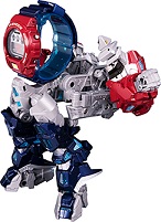 腕時計をロボットの胸部に内蔵させられる特別仕様となっており、直立したロボットモードと、腕時計を飾れる台座モードの2形態に変形できる。G-SHOCKは「DW-6900」をベースとし、マスターオプティマスプライムと同じレッドとブルーの配色を採用しています。