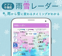 また「Yahoo!天気」アプリは、昨年同様6時間先までの「降雪」や「降雨」、「降雪量(雪の強さ)」を地図上に表示する機能「雨雪レーダー」の提供も開始しました。ユーザーは「雨雪レーダー」により、知りたい地域が「雪」なのか「雨」なのか、また雪が降っている場合はどのくらいの強さなのかという予報を、6時間先まで知ることが可能です。