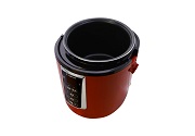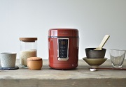 取っ手付きで食卓への持ち運びにも便利。ボディカラーはブラックとレッドの2色を用意。食卓に置くことを想定して、落ち着いたデザインを採用。内釜、上蓋、内蓋がそれぞれ外せるので、お手入れしやすい構造になっています。