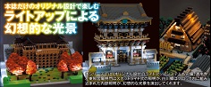 オリジナル設計のライトアップシステムが完備されているため、「清水寺」と「東照宮陽明門」はスポットライト式の照明が、「白川郷」はブロック内に組み込まれた内部照明が、幻想的な光景を演出するとのことです。