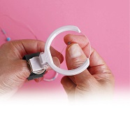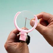 指につける拡大鏡は、「アクリル樹脂レンズ」と「レンズ台」がワンセットになったもので、レンズ台を指に装着・固定し、そこにレンズを取り付けて使用します。倍率は3倍で、指先の細かい作業に最適です。