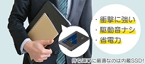 SSDに換装することによって様々なメリットがあります。HDDのような衝撃や振動によって破損しやすいディスク駆動部品が搭載されていないので、耐衝撃性能と耐振動性能が向上します。またモーターなどの駆動部品も搭載されていないため書き込み時の騒音もなく、ハードディスクに比べて消費電力を大幅に抑制できます。