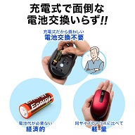 マウスの電源と言えば電池とステレオタイプになっていますが、サンワサプライは2月22日、静音ボタンを採用して周りへの配慮ができる内蔵充電池式のワイヤレスマウス「400-MA109BK_R」を発売しました。直販サイトでの販売価格は2,980円(税込)です。