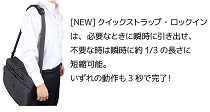 「クイックストラップ」QS-01は、ワンタッチで伸縮自在な世界初のショルダーストラップ。必要な時に瞬時に引き出せ、不要な時は瞬時に約3分の1の長さに短縮。伸縮・短縮に掛かる時間はたったの3秒。アスキーストアで販売中、 価格は3,348円(税込)です。