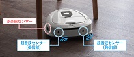 「ルーローの三角形状」によって、部屋のスミまでブラシが入り込み、本体を左右に振りながら動くので、しっかりとゴミをかき出すことができます。また、壁ぎわを検知して走行するので、ゴミがたまりやすい壁ぎわを徹底的に掃除します。超音波センサーは、前方の広範囲に音波を出すことで、鏡面や黒色・透明な障害物も検知します。右サイドに配置された赤外線センサーは、障害物までの距離を検知。壁沿い走行が可能です。