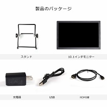 ACアダプターとスタンドが付いてきますが、USBバスパワーで動くのでACアダプターを使用することはほとんどありません。スタンドはタブレットPC用のスタンドに変えた方が安定します。入力がmini HDMIなので、PCのHDMIにつなぐには、HDMI-mini HDMI変換アダプタが必要です。