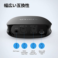 Bluetooth 5.0に対応、Bluetooth 4.2に比べ、約2倍のデータ送信スピードを誇ります。CSR BC8675チップを搭載し、音声遅延を極限まで抑えます。トランスミッター(送信機)モードでは、最大2台のBluetoothヘッドホンをテレビと接続でき、またレシーバー(受信機)モードでは、最大2台の機器を家庭用ステレオシステムと接続し、音楽を再生できます。