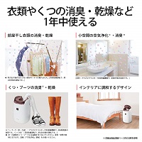 プラズマクラスターと温風で洗えないふとんや枕に付いたニオイをしっかり消臭します。また、気になる子どもの寝汗やおねしょのニオイにも効果的です。衣類やくつの消臭・乾燥など、1年中使うことができます。