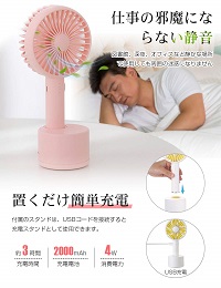 卓上&手持ち2WAY:付属のスタンドを使えば卓上タイプ、スタンドなしなら手持ちタイプとして使える2WAY携帯扇風機です。スタンドが付属しているので自立し、卓上タイプとして、オフィスや自宅の机など、デスクの上にぴったりです。Amazonでの販売価格は、 1,980円(セール実施時)です。