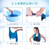 UVカット率98%で真夏の強い日差しから肌を守ってくれるので、頭や肩から掛けて身体を冷やしつつ、日焼けを防止します。吸水性が非常に高いためスポーツ用汗拭きタオルとしても使えます。たっぷり汗をかいても安心します。抗菌と防臭加工でいつでも清潔に利用できます。洗濯機でジャブジャブ洗えるので、衛生面が気になる方でも安心して使えます。