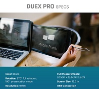 「Mobile Pixels DUEX」はノートパソコンの背面に設置して利用できるモバイルモニター。USB Type-Cによる電源共有で動作するので、電源コードの煩わしさがありません。画面の向きは270度回転スライド、180度プレゼンテーションモードの2種類が用意されています。