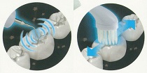 毎分200万回の超音波振動とイオンで、ステインやヤニ汚れなどを浮き上がらせ、歯のエナメル層にやさしく除去します。※一般的な音波歯ブラシは毎分3万回程度