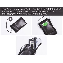 PUレザーのショルダーバッグです。ミニ サイズですが スマホやDAP、 マネークリップカードケースなビ一通り入る便利なバッグです。 裏側には定期などICカードが1枚入るポケットを実装しています。