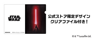 公式通販サイトと各小売店でスター・ウォーズデザインのMAMORIO FUDAを購入すると、1点につき限定クリアファイルが1枚プレゼントされます。デザインは3種類で、「A:スター・ウォーズロゴデザイン」(各小売店)、「B:ダース・ベイダーイラストデザイン」(各小売店)、「C:ライトセーバーデザイン」(公式通販サイト)となっています。